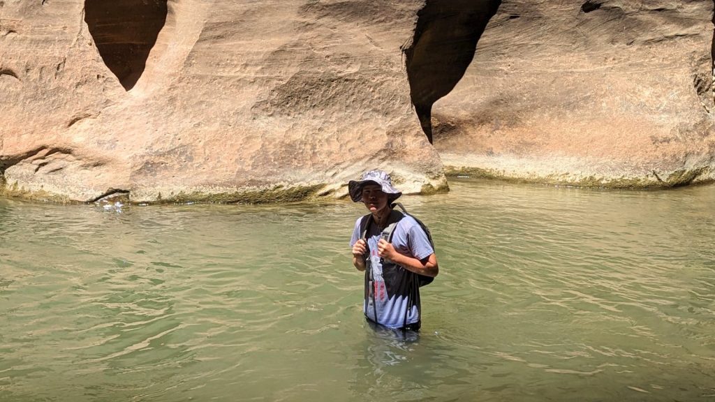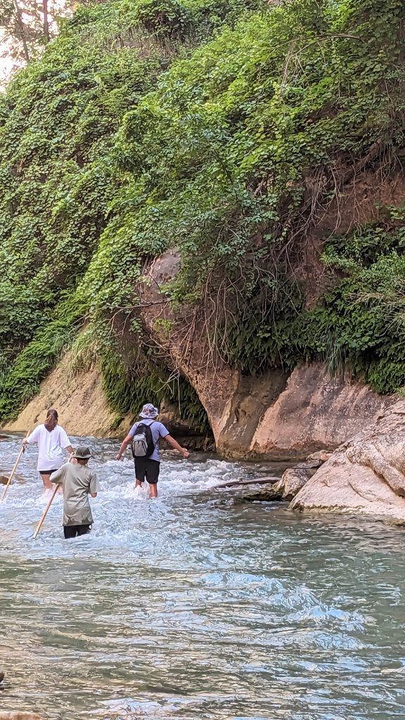 It was a fun experience. The big rocks under your feet were tricky, the water flowed strong in some points, and the water went above our waist at a couple of points.