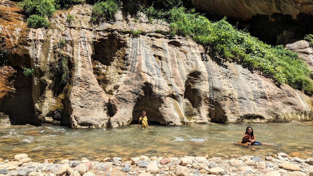 I stayed back with Malachi and Anna. They played and played in the flowing Virgin River. We decided to walk on and we met up with Sean and Caleb.